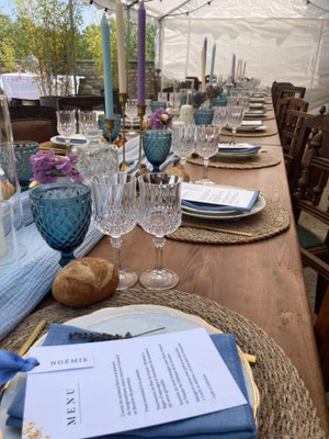 Depuis la création de Les Beaux Jours, nous avons eu la joie d’accompagner de nombreux événements, chacun avec son ambiance, son histoire et son lot d’émotions. Mariages en plein air, anniversaires dans un jardin familial, baptêmes intimistes, repas d’entreprise élégants ou encore shootings d’inspiration… Nos prestations sont à l’image de nos clients : uniques et sincères. Nous mettons à disposition notre sélection de vaisselle ancienne, de mobilier vintage et de décoration chinée pour créer des décors authentiques, chaleureux et poétiques. Chaque projet est l’occasion d’imaginer une scénographie sur mesure, en accord avec le lieu, la saison et surtout les envies de ceux qui nous font confiance. Au fil des années, nous avons travaillé avec des particuliers, des wedding planners, des photographes, des entreprises et des organisateurs d’événements… toujours avec la même attention portée aux détails et au plaisir de créer de beaux moments.